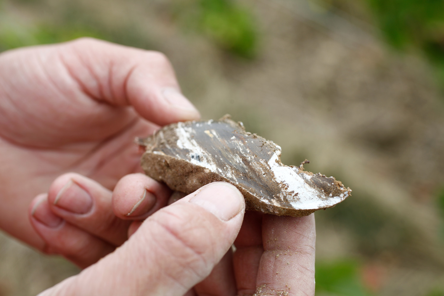 Кремък от Кампанския геоложки период с възраст 75 млн. г. Седиментни скали. Варовик, беден, мек и порест.